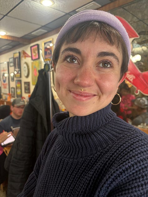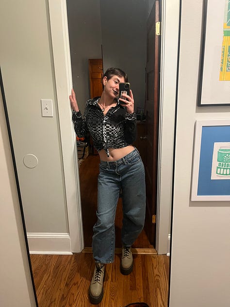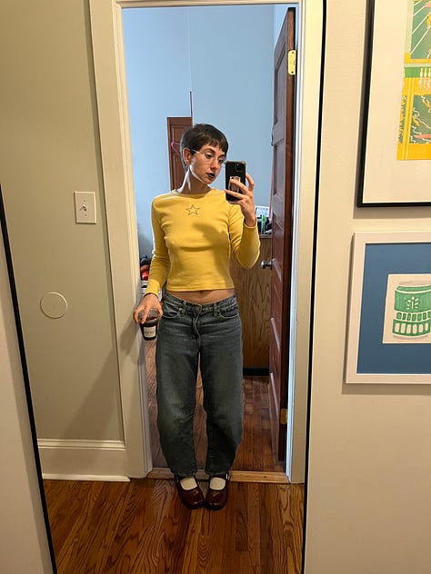 I was also thinking a lot about perfectionism and about excellence at the ballet. I grew up thinking I needed to be the very best at something in order for my contributions to mean something—when it came to sports, to music, school, and I think that leaked into my understanding of myself within my social world too. I thought I had to be special in some way. I told myself a lot of stories about what I deserved and what I didn’t. Looking back now, I understand I developed a coping mechanism where I make sure to keep my hands in a lot of pots. If I’m good at a lot of things, then no one thing can break my heart when I’m not the very best. In some ways I think this is healthy! I was talking with Alex about it and he said if I forced myself to only work in one medium, that wouldn’t be the truest expression of my art. However, I think that has, in practice, meant I am intolerant of the details. If I focused on getting something perfect, I would get stuck! I wouldn’t submit my poetry anywhere, I wouldn’t play a show, I wouldn’t release music. But so then, I have to get past a lot of very protective parts of my brain in order to dig in. What if I wanted to practice piano for an hour a day and really get better at my craft? I’m sure I’ve said this in so many words in other installments of embarrassment studies newsletter year, but I want to be able tolerate trying something, really wanting it to go well, and it going imperfectly instead. I went to the ballet and I watched the lead ballerina absolutely slaying, and I both had the internal dialogue of, diva I’m so worried about your ankles, and also the internal dialogue of, How cool would it be to get that good at your craft? To achieve that specific level of technical perfection? Alex talked me down from that haha. I am so hard on myself still, all of the time. I fixate on details I don’t get right. And my usual response is to get busy doing something else. But what if I could be with myself through the discomfort of staying with a practice? Tracking my progress? I think I’ve come a long way this year in my relationship with music, learning guitar parts for Daniel’s project, taking music theory classes, practicing more, and starting the process of writing the next album in earnest. But then my urge is to tell you about how I will continue to improve next. Perhaps some of my discomfort nudges me to write off the progress I’ve made thus far. I say, here is how I can be better. I have a plan of action, don’t worry! What if I dared to be proud of where I am now? Even if someone else looked at my progress and said, yikes for you!