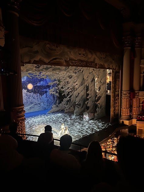 I am getting to the end of my year of embarrassment studies. Wednesday night I went with Alex and his siblings to see the Nutcracker in Center City. I was remembering watching Barbie’s the Nutcracker as a kid, and how much of that universe was specifically SO EXCITING to me: the sugar plum fairy, the candy universe, the way fairy tales are both genuinely terrifying and whimsical at once. That wonder and strangeness remain so central to what I want in my art.