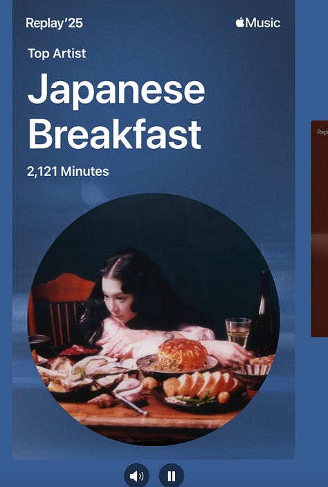 Here is what I listened to this year!! I thought Wednesday would be #1 but turns out I love Japanese Breakfast more than life itself! Shocker! (I did go out and buy black lipstick after seeing photos of Ms. Wednesday wearing it and I feel like that is my new era!!!)