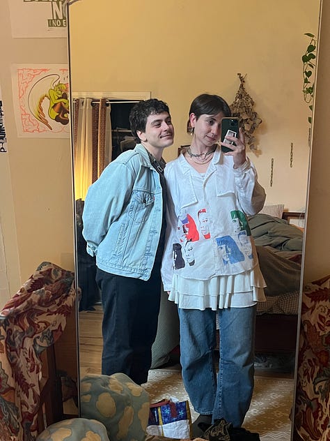 I feel similarly about music, that I’ve been wanting to actively listen again, like when I wrote for post-trash and focused primarily on Philly bands. I’m going to start doing interviews for the Tonearm, and they seem open to and excited about weird angles on art, so I think it’ll push me to bring my own set of knowledge to studying music, hopefully find some inspiration and confidence there. I really feel momentum on the new album—demo-ing things out has been a blast so far. Me and Nate and Daniel interrupting each other during recording to keep yapping about plot structure or references for songs. I love those guys. That time just feels especially precious, and I’m excited we’re dedicating a whole weekend coming up to working on new songs. I can tease but cannot yet announce that we have a few really exciting shows lined up for the year. I’m very pleased and will likely get to share our summer schedule next newsletter so stay tuned!! I got to see a stripped down Mannequin Pussy set on Saturday, and it was good to revisit music that really matters to me and moves me. It was my five-year anniversary gift to Alex and we both cried at the guitar solo on “Control” which was slower and bouncy and came after Missy backed away from the mic to hit a really big note. Can you comment or poke me with music recs? I feel like I’m in a listening rut right now.