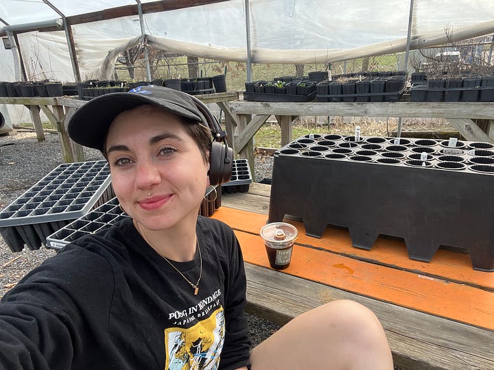 My mentor gave me a library of books on native plants to read, so I’m also hoping to make time for that. I keep dreaming of getting to the nursery early before my typical working hours and just reading in the greenhouse this spring. I’ve loved the moments where it’s warm but raining, hearing the water on the plastic cover of the greenhouse bay. We’re having our nursery opening Sunday, April 12th, and after that we’ll be open for regular hours. If you want to come sit and have coffee with me at the nursery, poke me!